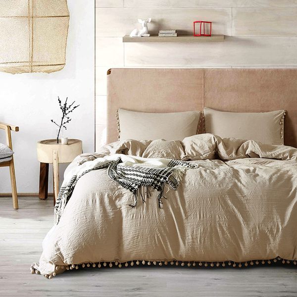 Grosshandel Microfaser Einfarbig Bettwasche Set Kleine Pompons