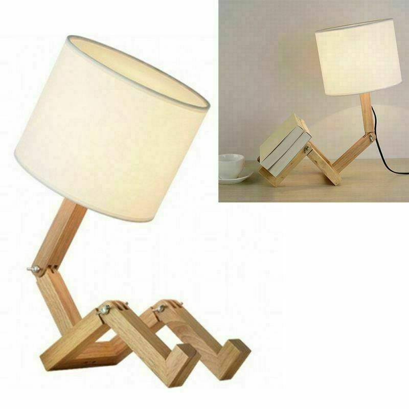 Einstellbar Tischlampe Kreative Holz Robot Nachttisch Lampe Stoff